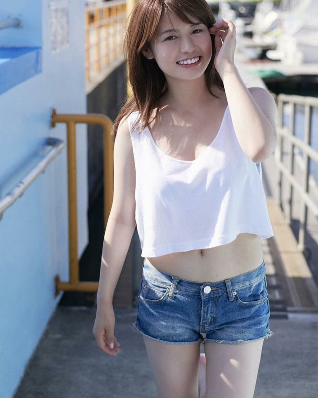 井口綾子、色白もち肌の水着姿で笑顔