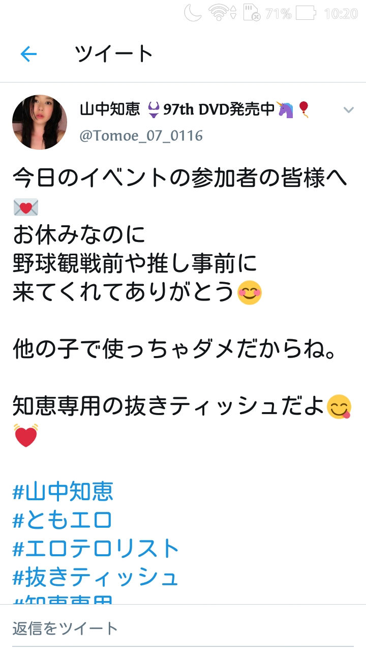 — 山中知恵 👙97th DVD発売中🦄🎈 (@Tomoe_07_0116) 2019年8月28日