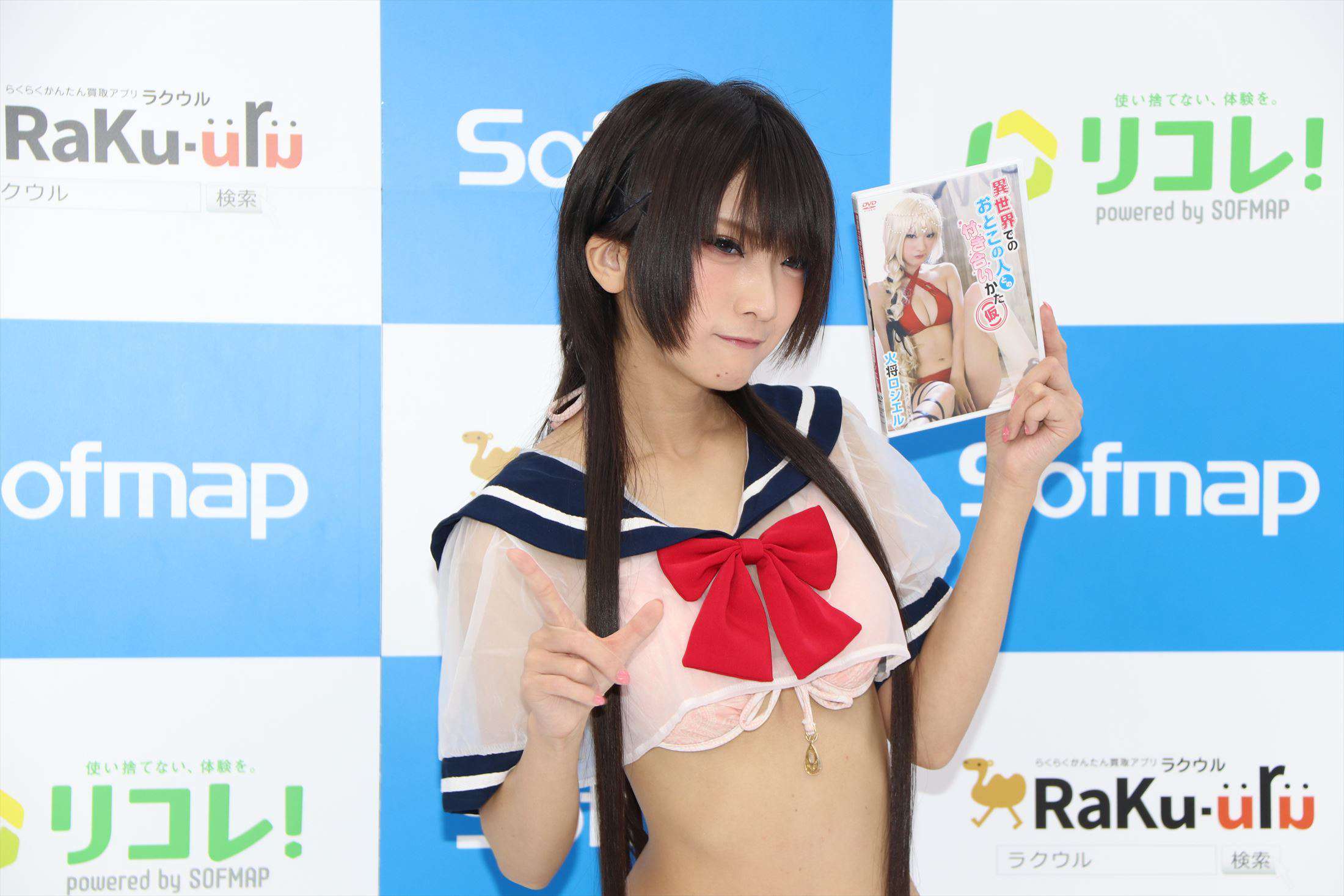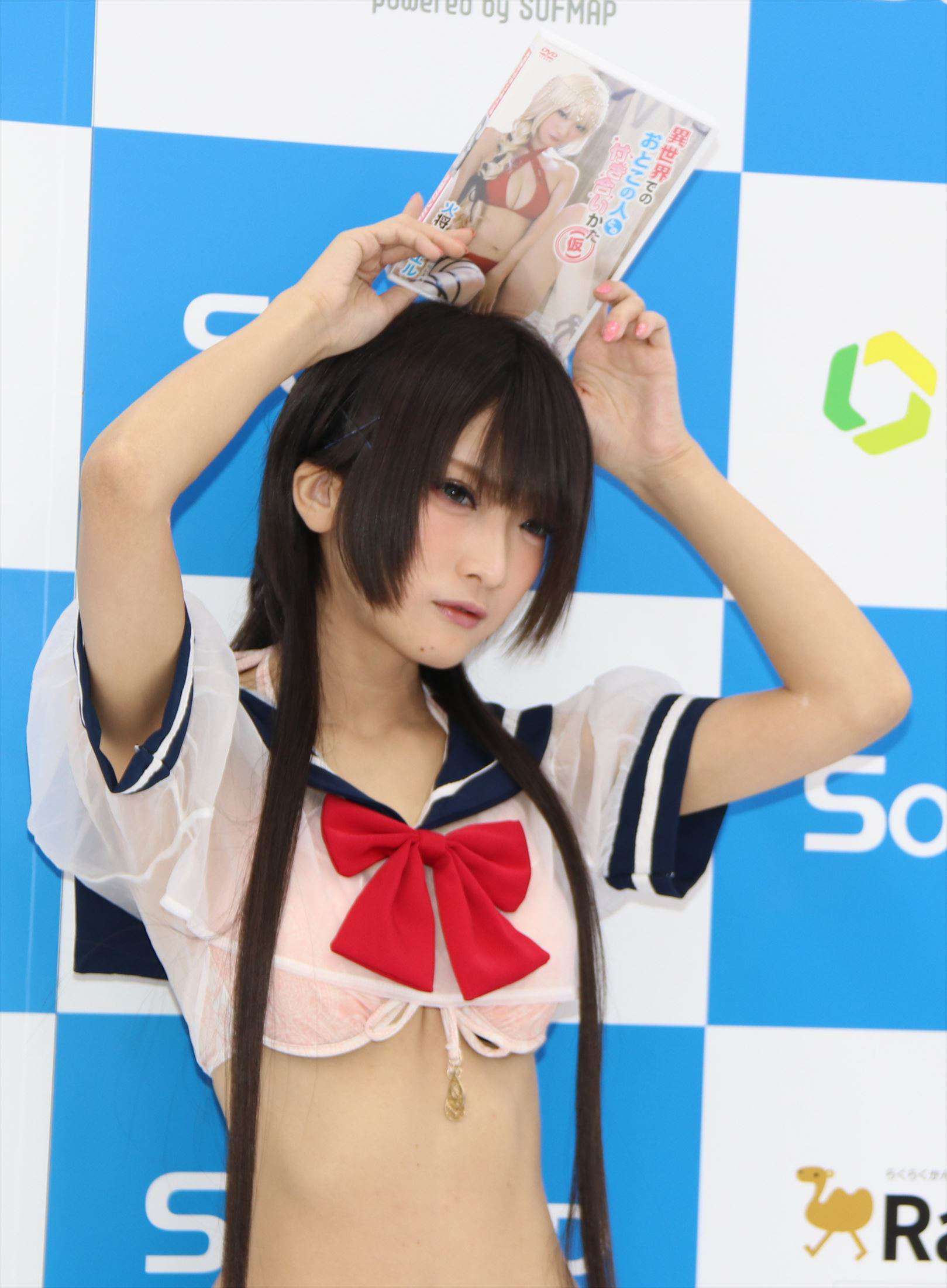 人気コスプレーヤーの火将(かしょう)ロシエルさんが1月4日、東京都内で行われたイメージDVD「異世界でのおとこの人との付き合いかた(仮)」(リバプール)の発売記念イベントにセーラー服をモチーフにしたコスプレ姿で登場した。火将さんの2作目のイメージDVDとなる