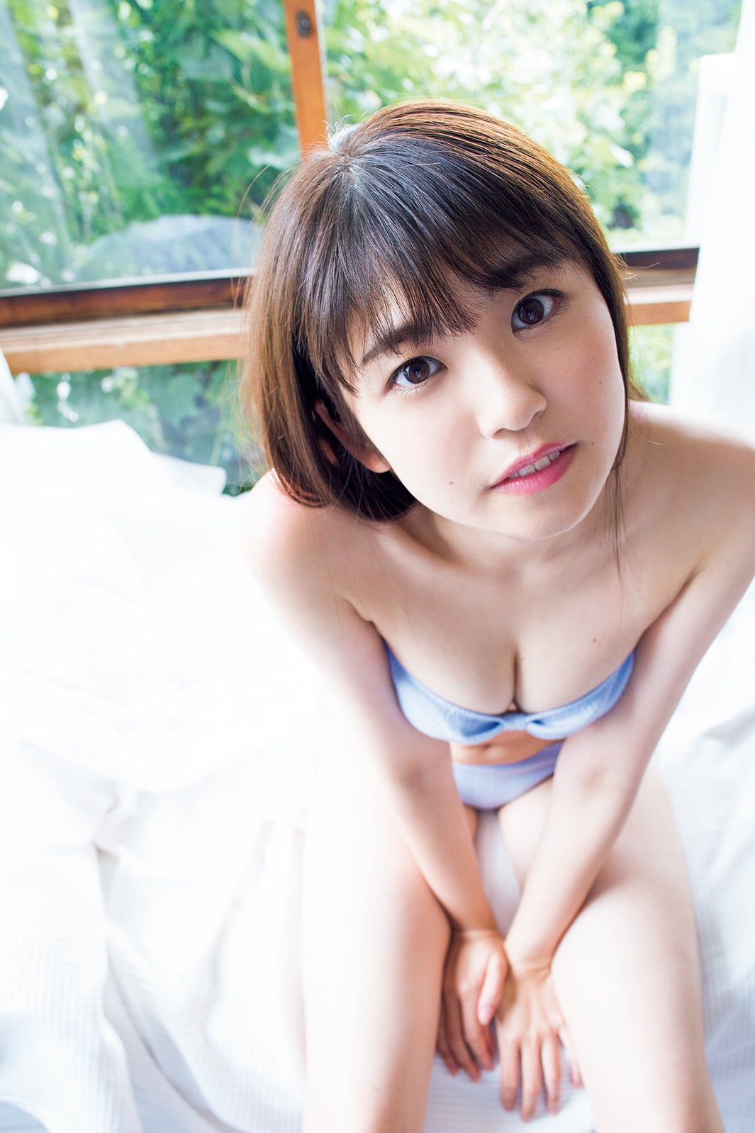 3月に20歳を迎えたばかり武田。まず目を引くのが、その小さな顔とすらりと長い脚という奇跡の九頭身。撮影中もスタッフが仕事を忘れて見とれてしまうほどの、洗練されたプロポーションだったという。それとは対照的に、「夏祭りには毎年行ってて。『東京ケーキ』(ベビーカステラのようなもの)をよく食べますね。え?愛媛にしかないんですか?愛媛ではだれでも知ってるのに…」と語る、飾りっ気のないキャラクターも武田の魅力の一つだ。
