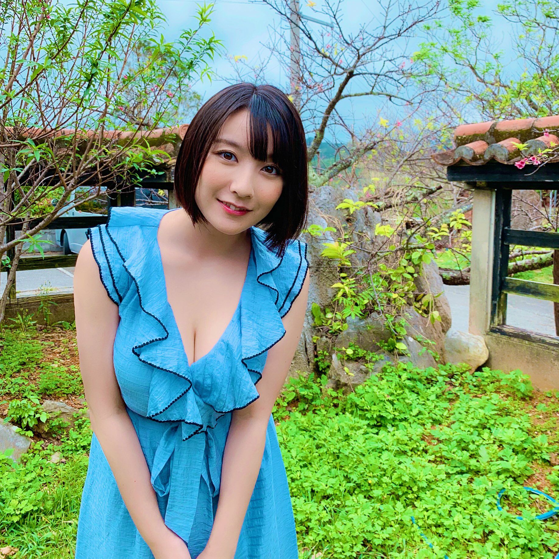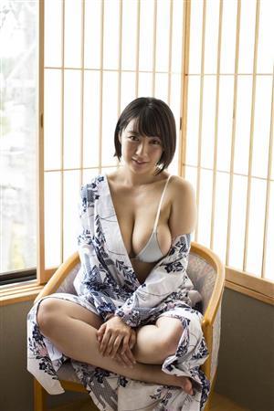 デビュー当時の90cmが、なんと100cmに成長したそうだ。7月に静岡県の下田で撮られた今作でも、メートル級のバストが炸裂か?